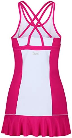 Girl Pink Tennis dress designed by a young trendy Sports Brand Company “Bace”. The dress features a flared skirt and printed brand emblem to the chest. The front is stylish with a straight fit and flared skirt and spaghetti straps back design at the back of the dress which adds a style look on court or on the golf course. Crafted with a quick dry 100% Polyester fabric.