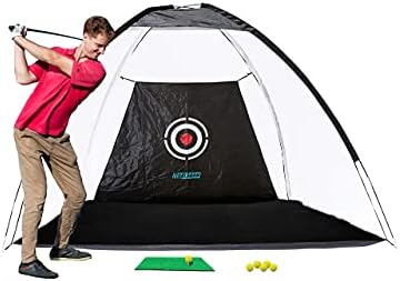 Golf Hitting Net, Golf Turf Practice Mat, Carry Bag, Fiberglass Poles, Bullseye Target, Driving Range Tee, 5 Driving Range Practice Golf Balls.