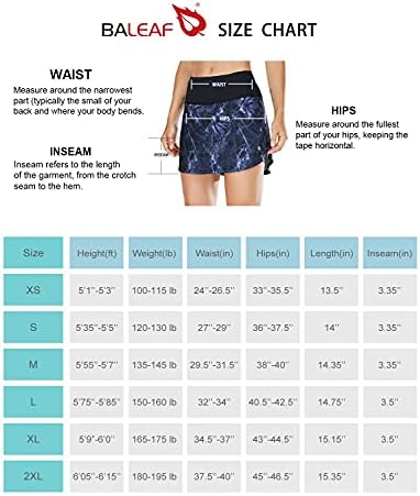 Baleaf medium coverage skort. Made in lightweight quick-drying polyester fabric featuring a comfortable knit waistband and built-in short liner. The printed makes the sports colorful.