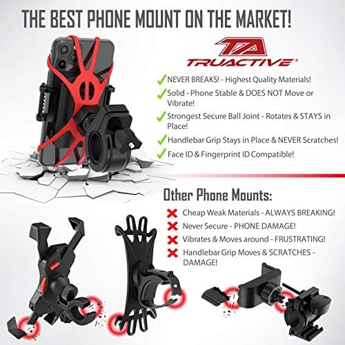 ✅ UNLIKE PHONE HOLDER FOR BIKE MODELS THAT RATTLE LOOSE AND FALL OFF DURING YOUR RIDE, TruActive’s Bike & Motorcycle Phone Mount features a UNIQUE, CUSTOM FITTING with an ADVANCED SECURITY GRIP that wraps all the way around your handlebars, and NONSLIP, ANTI-VIBRATION PADDING so your phone remains stable even on bumpy roads. Our lock grip guarantees that your phone won’t slip around or scratch your handlebars, and our CRADLE ARMS AND RUBBER SECURE STRAPS hold your phone firmly in place!