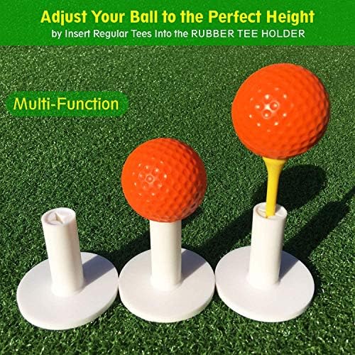 MULTI-FUNCTION RUBBER TEE – Insert Any Height of Golf Tees or Put Golf Balls Alone , The sizes conform with USA regular sizes, necessary for all day practice. Perfect for most 3, 4 and 5 woods and moderate volume drivers.