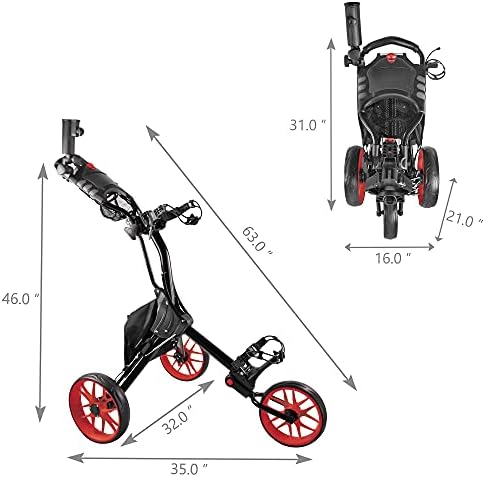 【FOOT-BRAKE SYSTEM】Foot-brake system can avoid any preventable accidents, such as sliding away or falling down. For maximum mobility, this folding golf cart also features ball bearing wheels for a smooth ride over any terrain