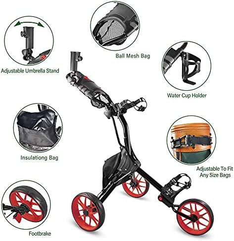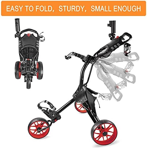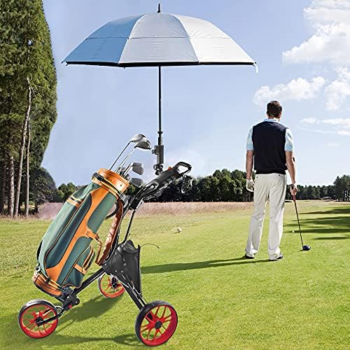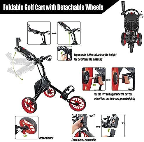 BOBOPRO Golf Push Cart 3 Wheel Lightweight Folding Golf Pull Trolley with Foot Brake Drink Holder Scoreboard Umbrella Holder Golf Accessories for Practice and Game Gift for Men Women/Kids