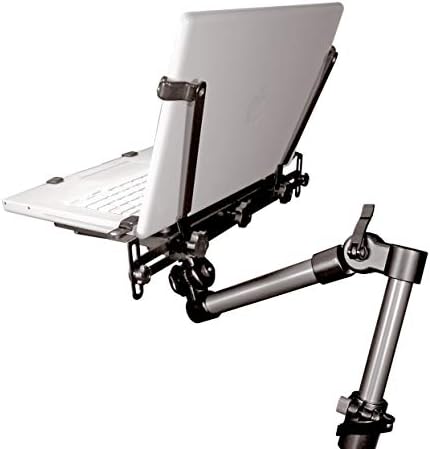 SECURE MOBILE COMPUTER STAND: This mount is compatible with laptops and computers ranging from 10–17″. It’s made from heavy-duty 30-millimeter aluminum tubing and high-strength alloy locking joints. The quick-release fitting makes it easy to attach or remove the stand from the passenger seat bolt.