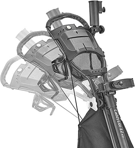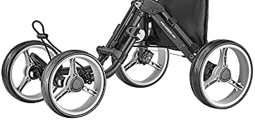 The CaddyTek Superlite 4 wheel Explorer golf cart weights less than 15 lbs and can be folded in 2 simple steps to compact size for easy storage in car trunks before or after your round of golf. The 10. 5″ rear and 9. 5″ front wheels make it Rolling easily in the high grass. Golfers can push the cart effortlessly on all terrain with the stable 4 wheel design, multiple handle positions and smooth-rolling ball-bearing wheels. The CaddyTek Explorer V8 comes with the miscellaneous basket (built-in cooler and is equipped with features that most golfers want, including umbrella holder, scorecard holder with storage compartment, beverage/cell phone/GPS holder and the mesh net on the handle.