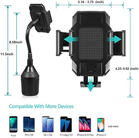 ?Extensive Compatibility:Goose neck car cup holder provides non-slip stable surface for all types of 2.16 inch- 3.75 inch smart phones,fits perfectly for iPhone XS/8/8 Plus/6 Plus and the Note 8/9/s9 and GPS.