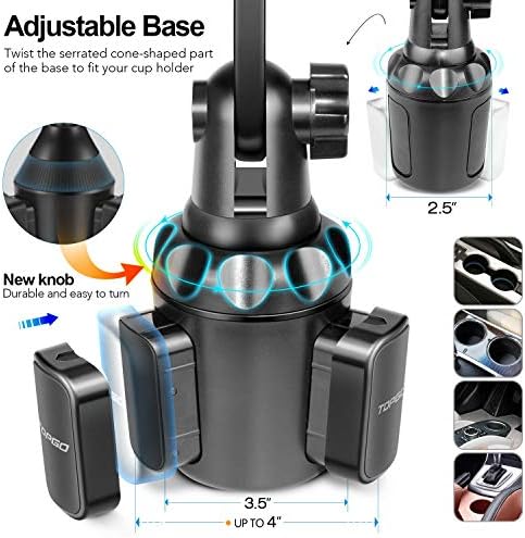?[Unique Infinitely Adjustable Base]: UP to 4″ diameter, after attached rubber extender. You could adjust different sizes to fit your various cup holders in car, truck, RV, boat, golf cart, etc. The most adaptable base with modern design knob, made with durable plastic. Just little twist, not like open bottle caps.