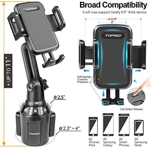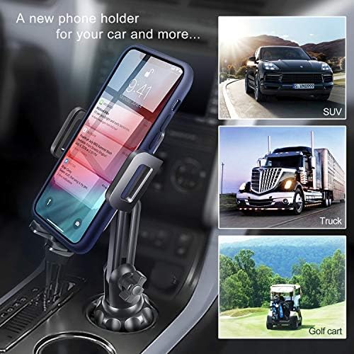 Car-Cup-Holder-Phone-Mount Adjustable Pole Automobile Cup Holder Smart Phone Cradle Car Mount for iPhone 11 Pro/XR/XS Max/X/8/7 Plus/6s/Samsung S10 /Note 9/S8 Plus/S7 Edge(Black)