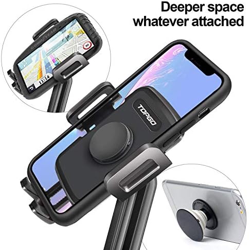 ?[Upgrade More Adaptable Phone Holder]: More DEEPER phone holder (up to 0.9″) with WIDER space (up to 4″). Featuring one-button release curved arm and extendable feet, they all with soft silicone pad. Let your phone without scratch first. Secondly, hold your phone securely without shaking or wobbling.