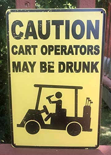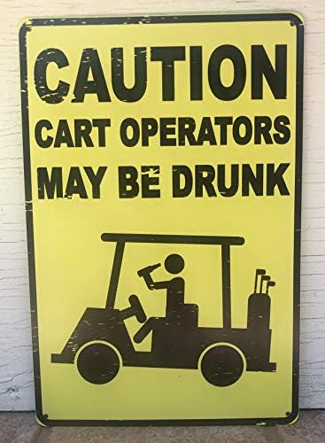 Caution Cart Operators May Be Drunk sign: Measures approximately 12″ x 8″; ships new in manufacturers packaging; comes with pre drilled holes in each corner for easy hanging.