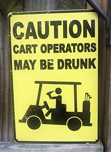 Caution Cart Operators May Be Drunk 12″ x 8″ Funny Tin Sign Golf Accessory Clubhouse Decor Man Cave Sports Bar Wall Art