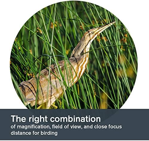 Top-rated glass optics with impressive specs: Fully multi-coated lenses for brighter images, more contrast and highest resolution with phase-coated BaK-4 prisms, 8x magnification power, and 6.5-foot close focus