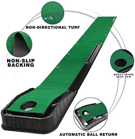 CHAMPKEY GL Golf Putting Mat – Automatic Ball Return Golf Putting Green – Alignment & Distance Training Mat Gift for Home, Office, Outdoor Use