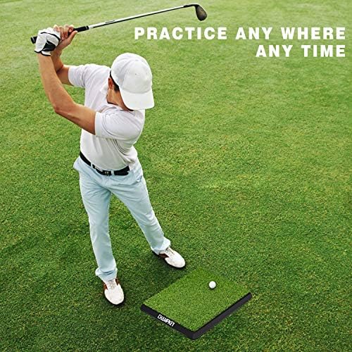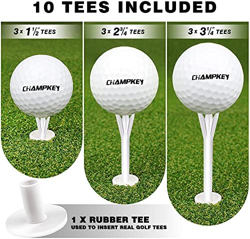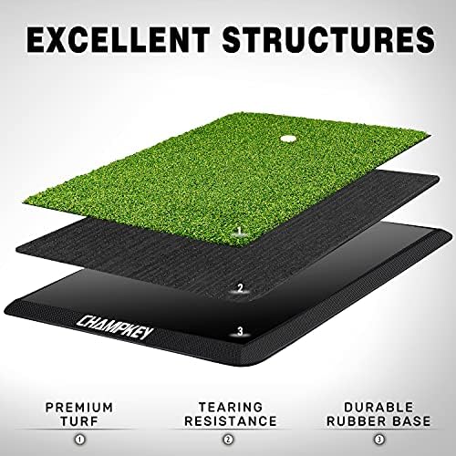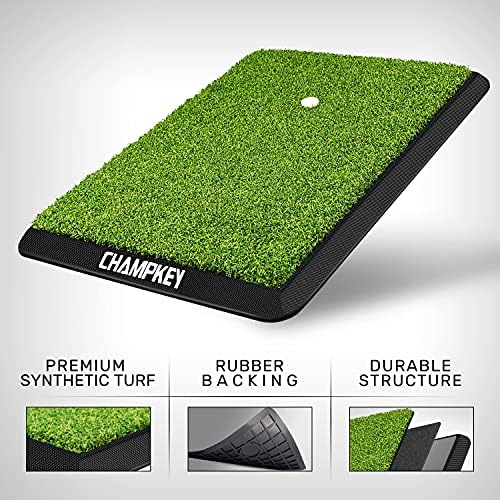 Champkey Premium Synthetic Turf Golf Hitting Mat | Heavy Duty Rubber Base Golf Practice Mat | Come with 1 Rubber Tee and 9 Plastic Tees