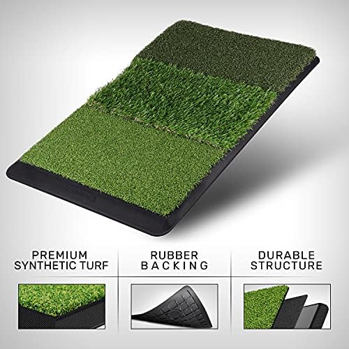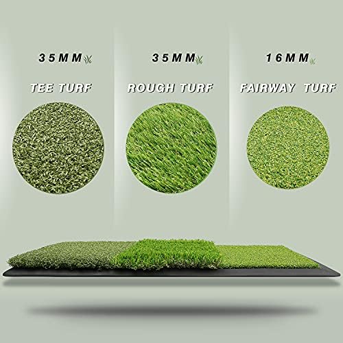 PRACTICE ALL SKILL LEVELS : You can practice any shot with rough turf ,fairway turf & tee turf. which lets you spare your lawn when practicing outdoors and gives authentic feeling turf when training indoors.