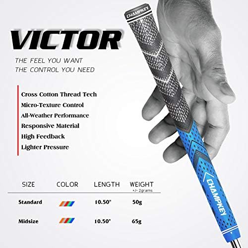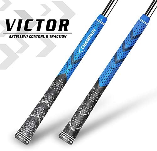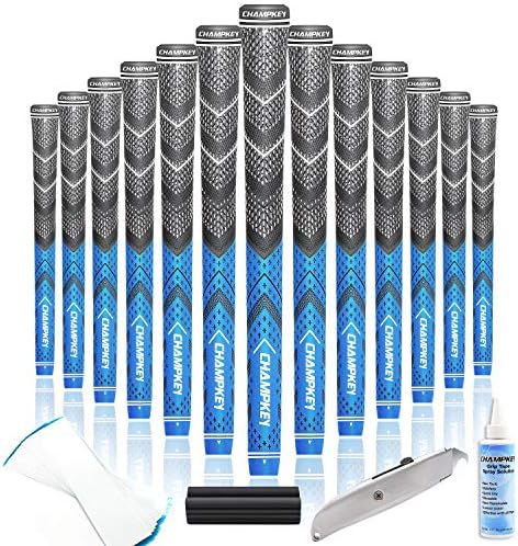 Champkey Victor Hybrid Golf Grips 13 Pack | Come with Solvent,15 Tapes,Vise Clamp and Hook Blade | All Weather Control and High Feedback Golf Club Grips