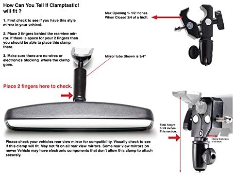 Clamptastick Universal Cell Phone Holder for Mounting On Rearview Mirror Compatible with Mobile iOS Devices, Android Smartphone GPS and More. Black Version 3