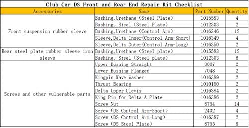CLUBRALLY Club Car DS Deluxe Golf Cart Front and Rear End Repair Kits 1993 up