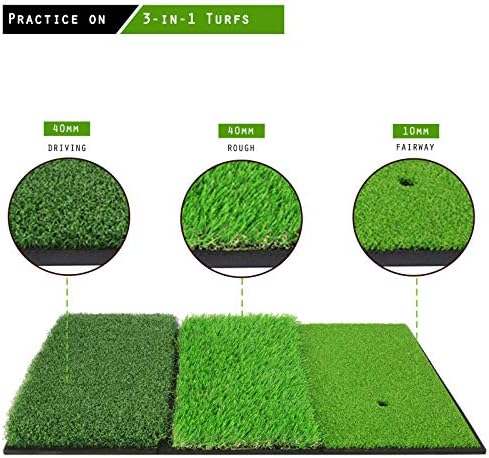 ⛳【3-in-1 Multifunction】 We have implemented 3 functions of rough, Fairway, and Short Grass/Tee Box on a golf practice mat. You can do all kinds of golf practice with the golf mat.