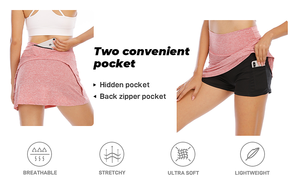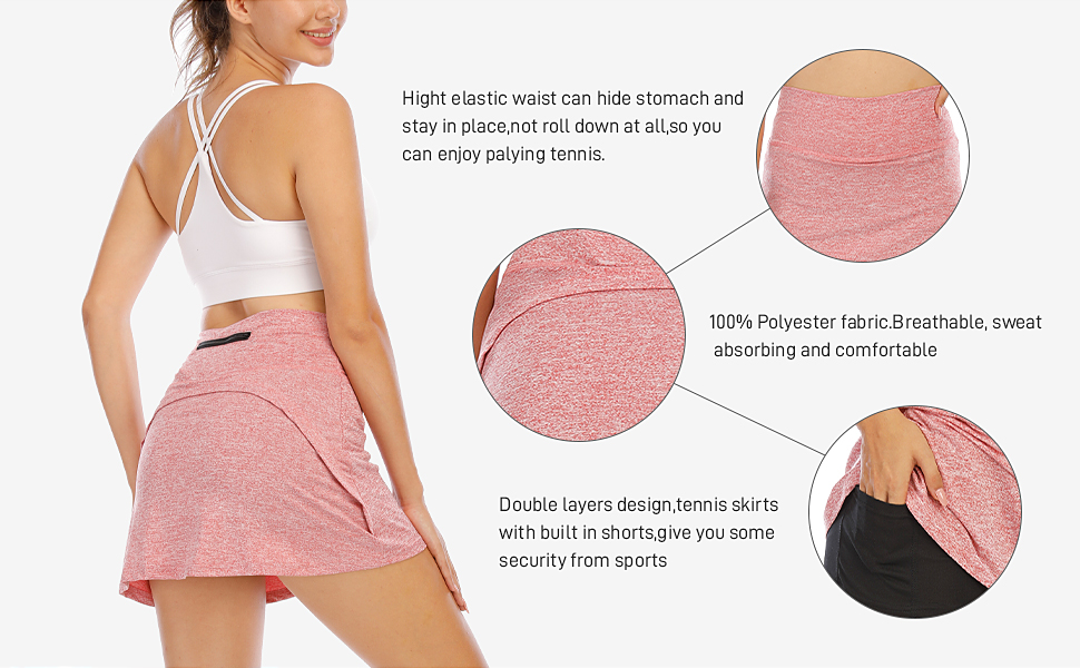 Versatile Shorts – Nonrestrictive.Polyester fabric provides greater freedom of motion and elasticity,exercise without restraint.And the stylish active skort with inner deep pockets,easy to hold little stuff.