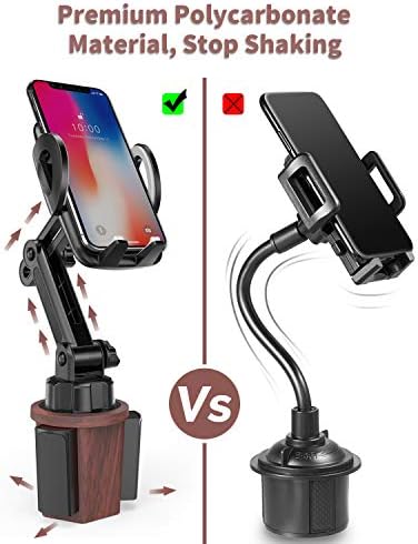 It’s the FIRST cup holder phone mount on the market adapts Precious Aerospace [PTFE] materials. Upgraded bigger adjustable base fits most bigger cup holders and it won’t loosened at all even in bumpy road.