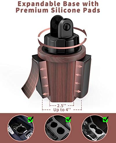 Upgraded Expandable Base: The cup phone holder comes with an adjustable base with a diameter ranging from 2.5in to 4.1in, so it can fit the cup holder of your car, SUV, truck or any other vehicle equipped with standard cup holders.