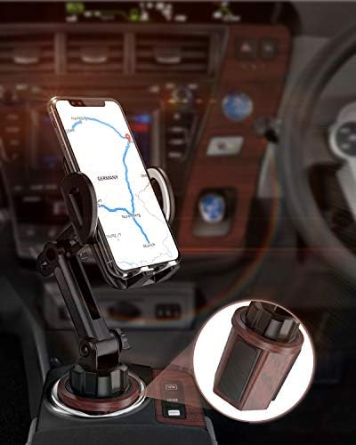 Cup Holder Phone Mount for Car, SUPERONE Easy Clamp Wood Grain Cup Holder Car Mount Compatible with iPhone 12, SE, 11, 11 Pro, 11 Pro Max, XS Max, XS, XR, Galaxy S20 Ultra, S20+, S20 and More