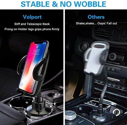 Cup Phone Holder for Car Upgraded, Volport Auto 360º Flexible Cupholder Cell Phone Holder, Automobile Cup Telephone Mount for iPhone 11 Pro Max XS XR X 8 Plus Pixel 4 XL Samsung S10+ Note 10 Plus A20