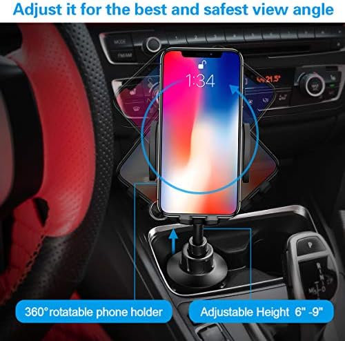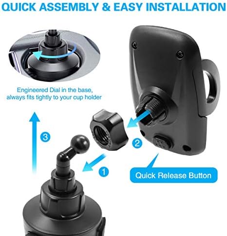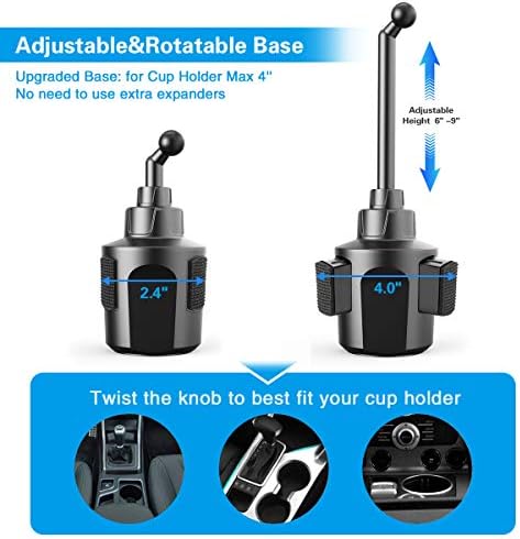 ?【Adjustable Heavy Base】The well made car phone cup holder base is 2.4”-4” in diameter, it is steady and shake-free for any compatible small or large car cup holders. Please carefully measure your car cup before purchase, to ensure this product fits your car cupholder. The engineered dial in the base makes the 3 expanders won’t retract on rugged roads. This smart phone car mount cradle is rotatable to tightly fits various car. Car phone mount cup holder long neck is 6-9 inch adjustable.