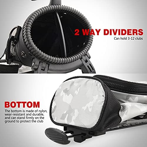 2 way dividers offers enough space to accommodate your golf clubs.There is a built-in carry handle.It is quickly to carry and go. Detachable Shoulder Strap- Padded shoulder strap for extra comfort, detach freely when needs.It is durable and confortable.