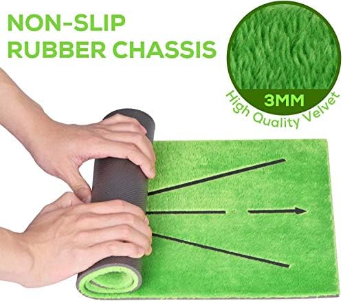 ?【High-quality Material】Golf mat, the new upgraded version is made of impact-resistant crystal velvet material. The high-quality rubber at the bottom is soft and heavy, fits the terrain very well, weighs 500g.
