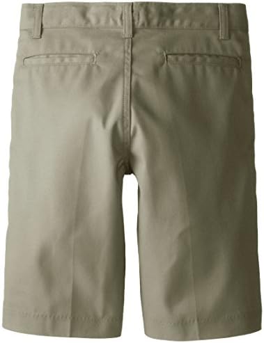 These shorts have a classic fit that sits slightly below the waist. The flex waist adjustable waistband allows your child to create a custom fit for even more comfort. This pair of shorts features easy care stain release, resists wrinkles, and mechanical stretch fabric for comfort and movement. No exterior logo. 7 o mechanical stretch twill, 60% Cotton/40% Polyester.