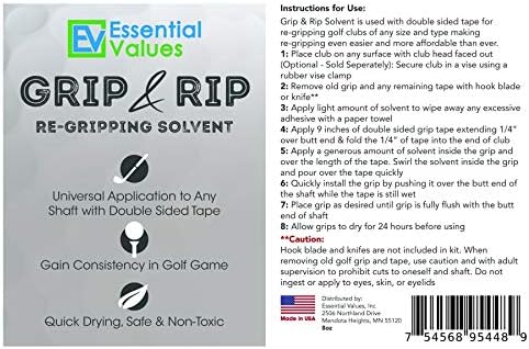 Essential Values Golf Grip Kit (8 Fl Oz) | Made in USA, Golf Solvent – Double The Solution Compared to Other Brands – Excellent for Quick & Easy Regripping of Golf Clubs