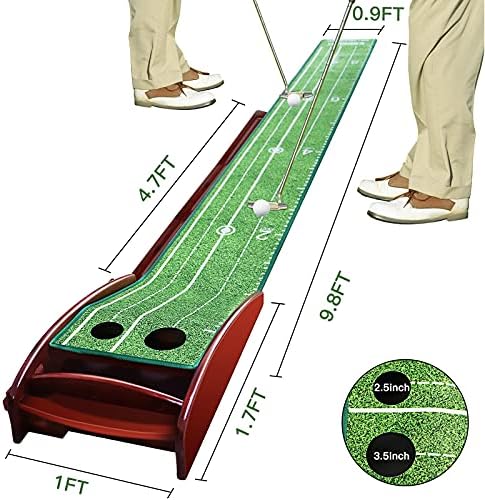 Auto Ball Return System with Putter Holder: The golf putting mat designed with Auto Return feature which deliver the ball back onto the putting green after every put. It helps you create a consistent, easy repeatable putting stroke with less effort. Also come with a Golf Putter Holder, you can lean your putter against it when not in use.