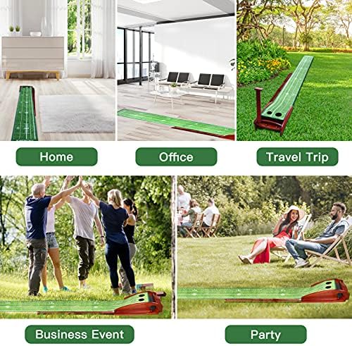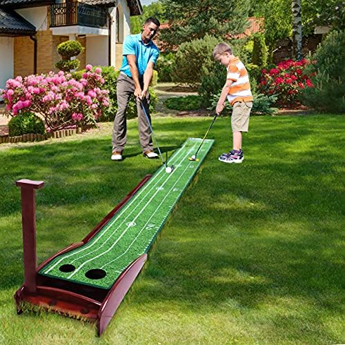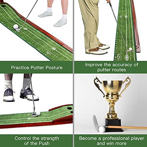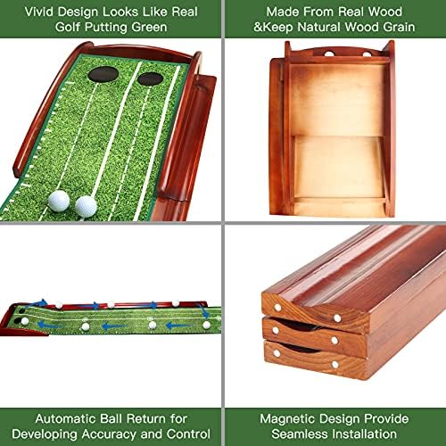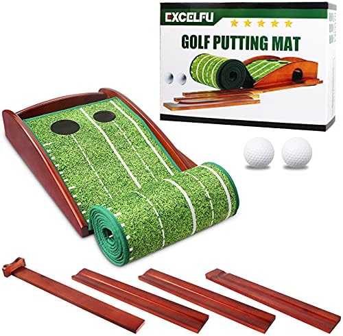 EXCELFU Putting Mat Golf Green for Indoor and Outdoor with Auto Ball Return, Crystal Velvet Mat and Wood Golf Putting Practice Equipment for Men Women, Home Office Backyard