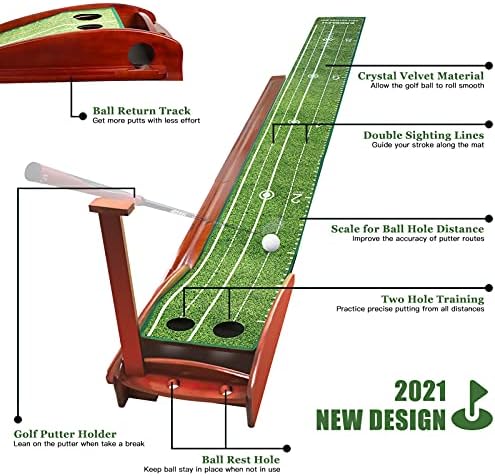 High Quality Putting Mat: Designed with crystal velvet material which looks like true golf green and allow a good true roll. The base of the putter is made of real wood. It’s like a beautiful piece of furniture. You might never want to put it away.