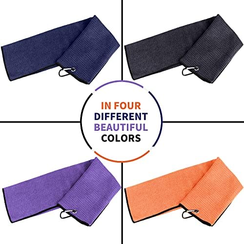 AMAZING 4 PACK GOLF GIFTS ACCESSORIES: 4*jumbo size (16″ x 24″)professional, microfiber waffle weave golf towels + 1*Foldable Divot Tool + 1*Club Brush.