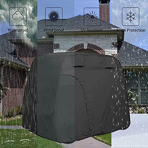 Heavy duty and Durable: this weather golf cart rain cover made of 420D Oxford cloth, coated with PU waterproof layer inside to enhance the overall water-resistance.