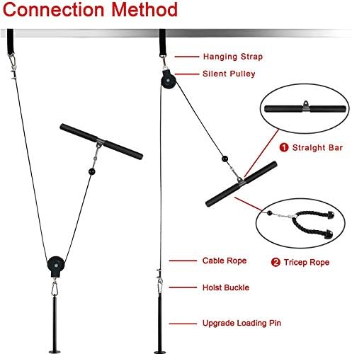 ?️EASY ASSEMBLE: you can easily remove the lifting buckle and replace the device handle, just pass the loading pin through the center hole of the weight plate, and then connect the parts. The lifting pulley system can be connected to the power frame, upper tie rods, beams and wherever belts can be installed. Its small package size allows you to take it with you and become your own personal equipment.