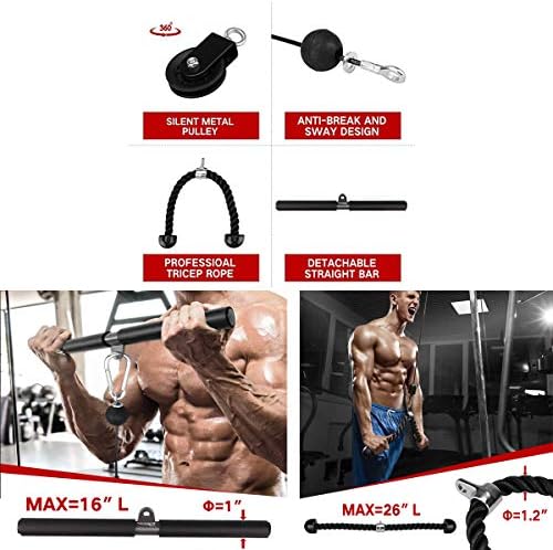 ?️OPTIMAL COMFORT: The detachable handle allows you to match other fitness equipment, the large foam straight rod handle provides comfortable grip, the thick nylon rope round handle reduces hand fatigue. The adjustable rope can easily adapt to people of different heights, and can be used standing or sitting, which helps to strengthen the wrists, arms and forearms muscle tension. LAT Pulldowns fitness equipment does not require much space and you can stay at home Workout or exercise in the gym.