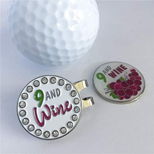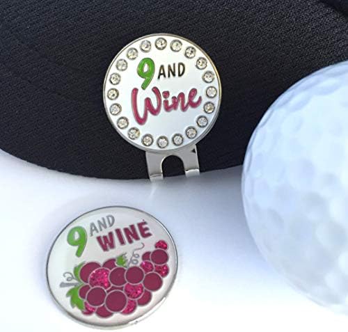 Flamingo Creek Bling Golf Ball Marker and Hat Clip Nine and Wine Womens Golf Gift Set Includes 2 Golf Ball Markers 1 Hat Clip