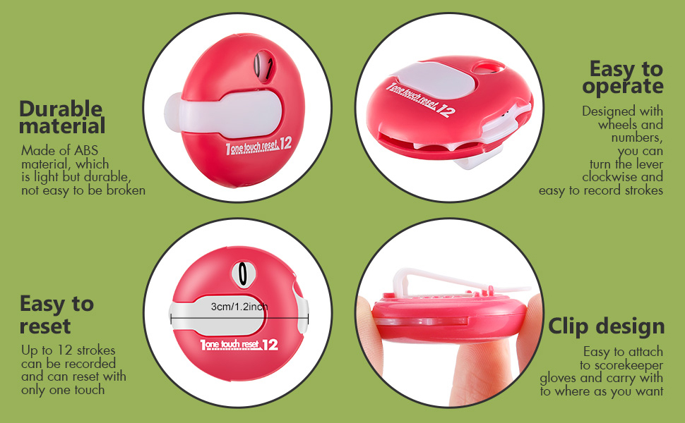 Easy to use: this mini golf scoring keeper can applied to record for 12 strokes, after then, just need to reset by one touch reset with single finger, very easy and convenient to operate