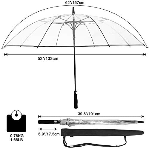 【62 Inch Clear Umbrella】The 62inch Large Umbrella under the diameter of 132cm(52inch), umbrella handle length 17.5cm(6.9inch), provide you excellent protection from moderate rain or wind.