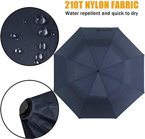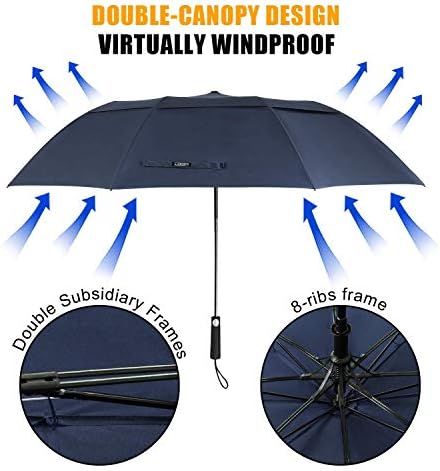 Double Canopy Strong Construction; Compared with other similar umbrellas easily breaking and flipping in the wind, this G4Free portable golf umbrella have superior windproof performance than others with upgraded double fiberglass ribs, vented double canopy allows the wind to pass through, avoiding from flipping over and breaking in the strong wind. Comfortable EVA grip with cord, 8 fiberglass ribs and steel shaft, this G4Free umbrella will be perfect in a metropolitan city or a sports field