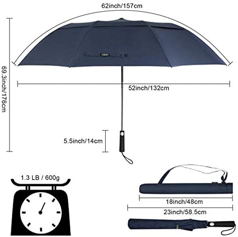 Revolutionary Innovation; The G4Free 62 inch Folding Golf Umbrella combines the best features of both Compact and Golf Umbrellas. Canopy opens up to a 62 inch arc.Foldable to only 23inch (58.5 cm) and weighing only 1.3 lb / 600g. Suitable for being packed inside the car, suitcase or backpack. Larger and stronger than the mini umbrellas. More compact than the stick umbrellas; Especially perfect for travel and golf lovers