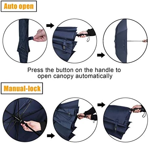 Auto Open Umbrella; Open this compact umbrella at the press of one button with one hand in a second. Offering instant cover from rain with a fast Opening Action. Please noted that this golf umbrella is collapsible and is closed by manual lock