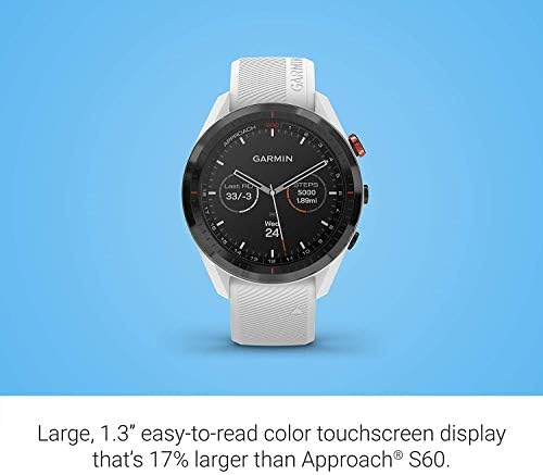 Large 1.3” easy-to-read color touchscreen display (18% larger than Approach S60) with scratch-resistant ceramic bezel and interchangeable QuickFit bands