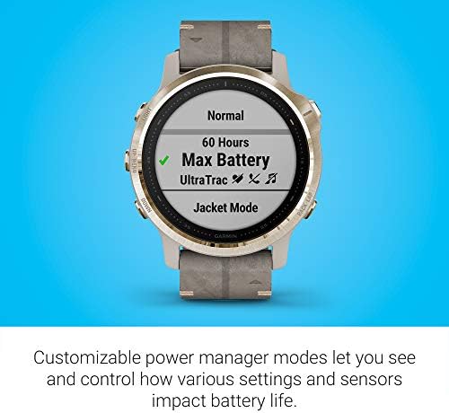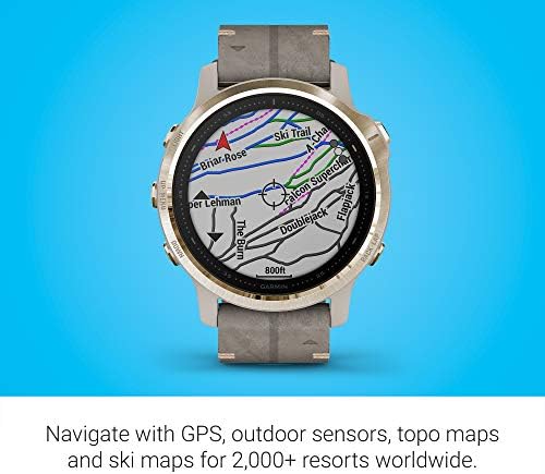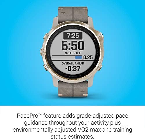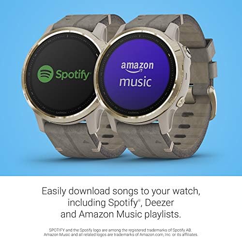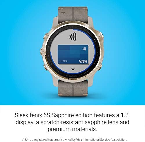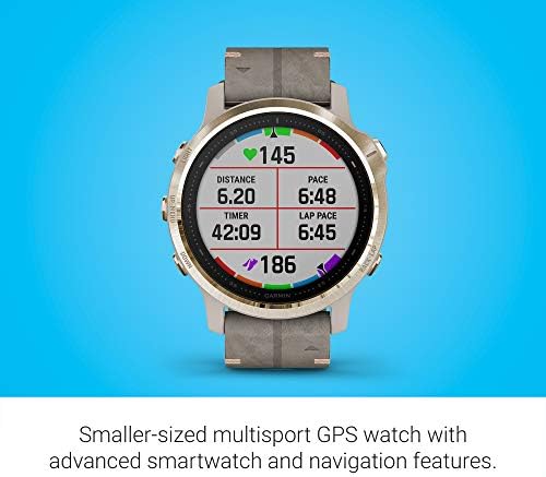 Garmin fenix 6S Sapphire, Premium Multisport GPS Watch, Smaller-Sized, Features Mapping, Music, Grade-Adjusted Pace Guidance and Pulse Ox Sensors, Light Gold with Gray Leather Band