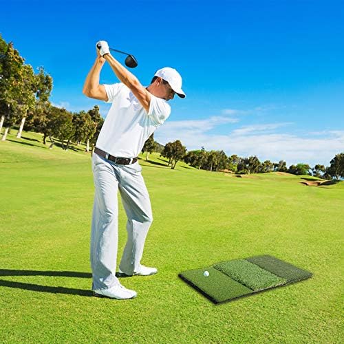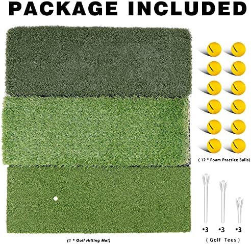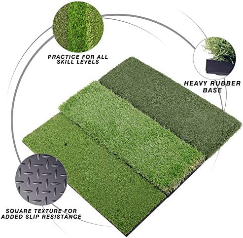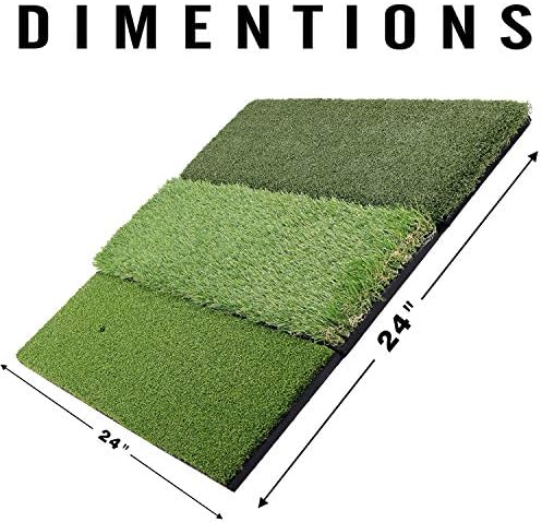 Gavistory 24″ x 24″ Tri-Turf 3-in-1 Golf Hitting Mat Foldable Includes Tight Lie, Rough and Fairway for Driving, Chipping, and Putting Golf Practice and Training