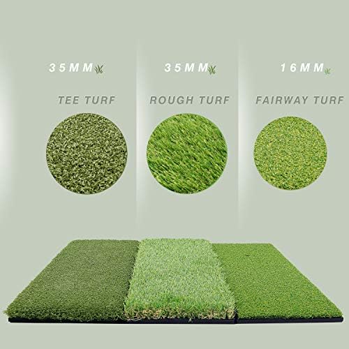 PRACTICE ALL SKILL LEVELS : You can practice any shot with rough turf ,fairway turf & tee turf. which lets you spare your lawn when practicing outdoors and gives authentic feeling turf when training indoors.
